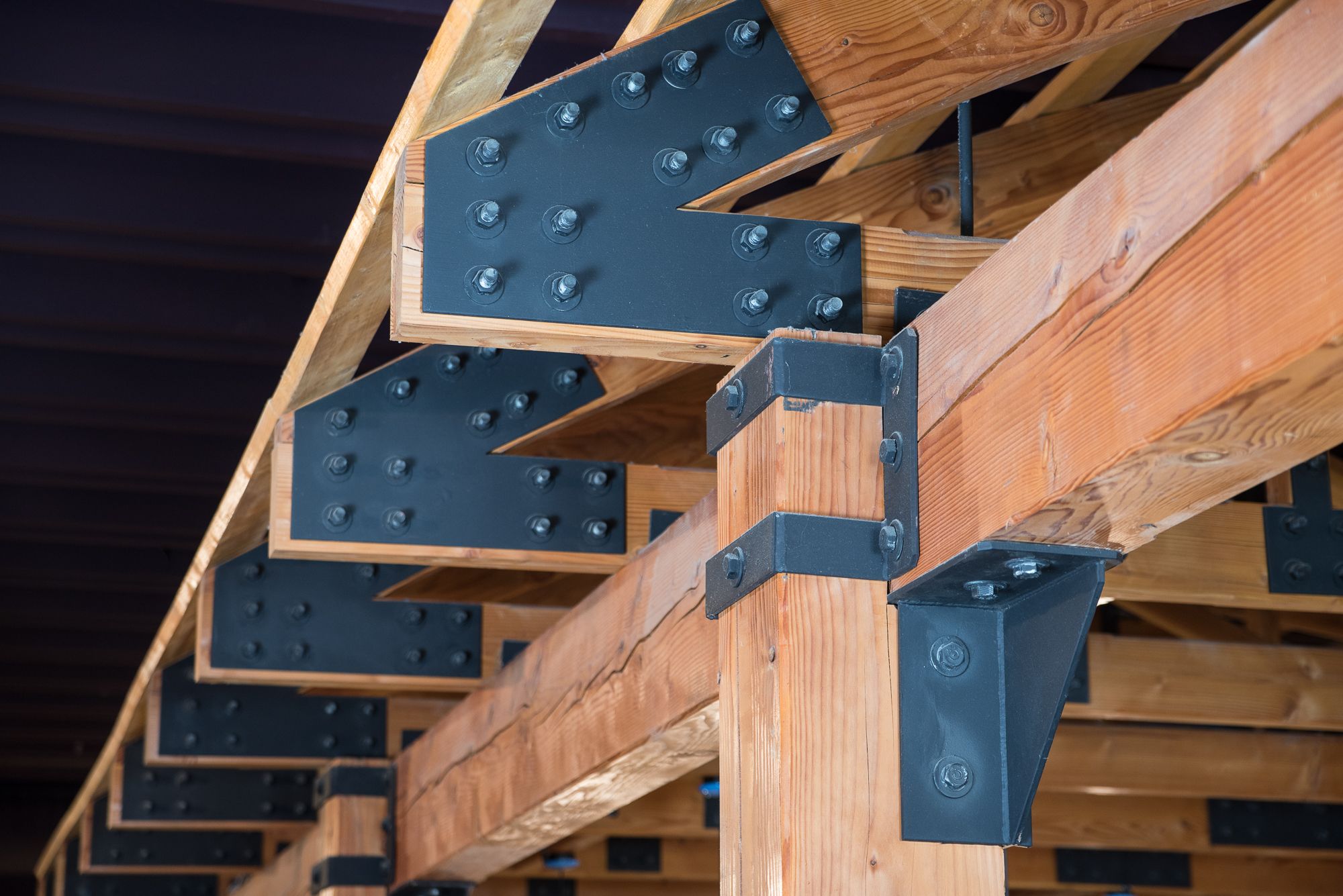 Ahşap yapıların bağlantı noktaları, çelik kelepçeler ve özel bağlantı sistemleriyle desteklenerek dayanıklılığı artırılır.